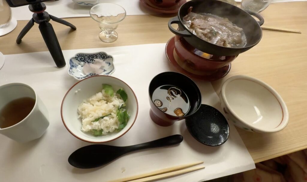 鍋と一緒に生姜と三つ葉の土鍋ご飯を提供されました。