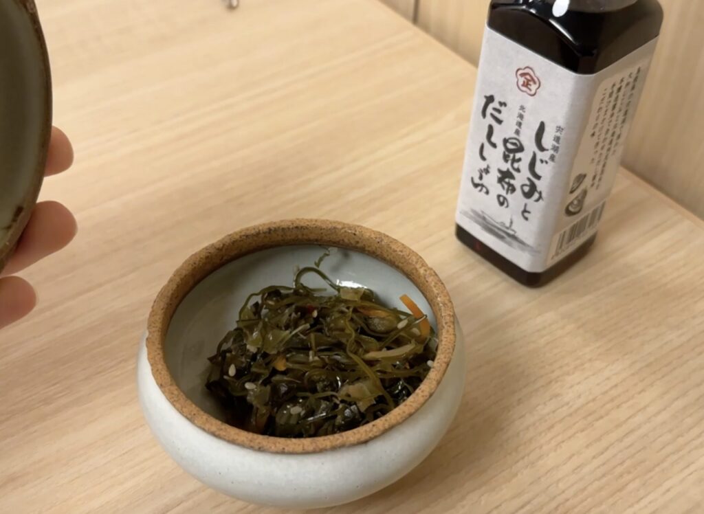 漬物やしじみの出汁醤油などは机に置いてありました。