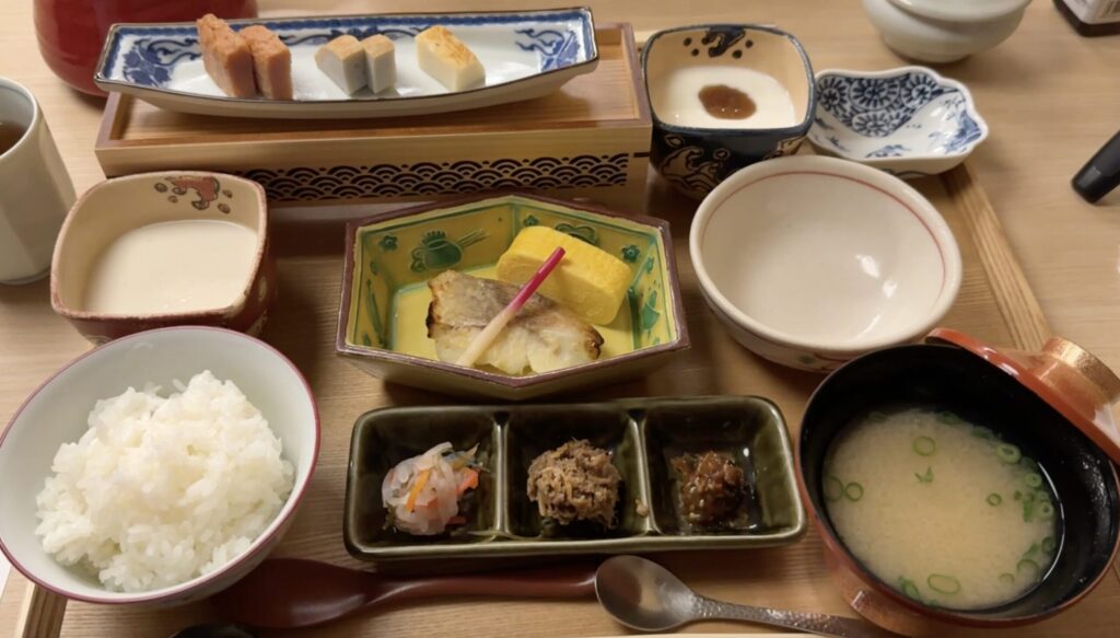 焼き魚や、あごの焼き、島根名物の赤天、しじみの味噌汁などがありますね。