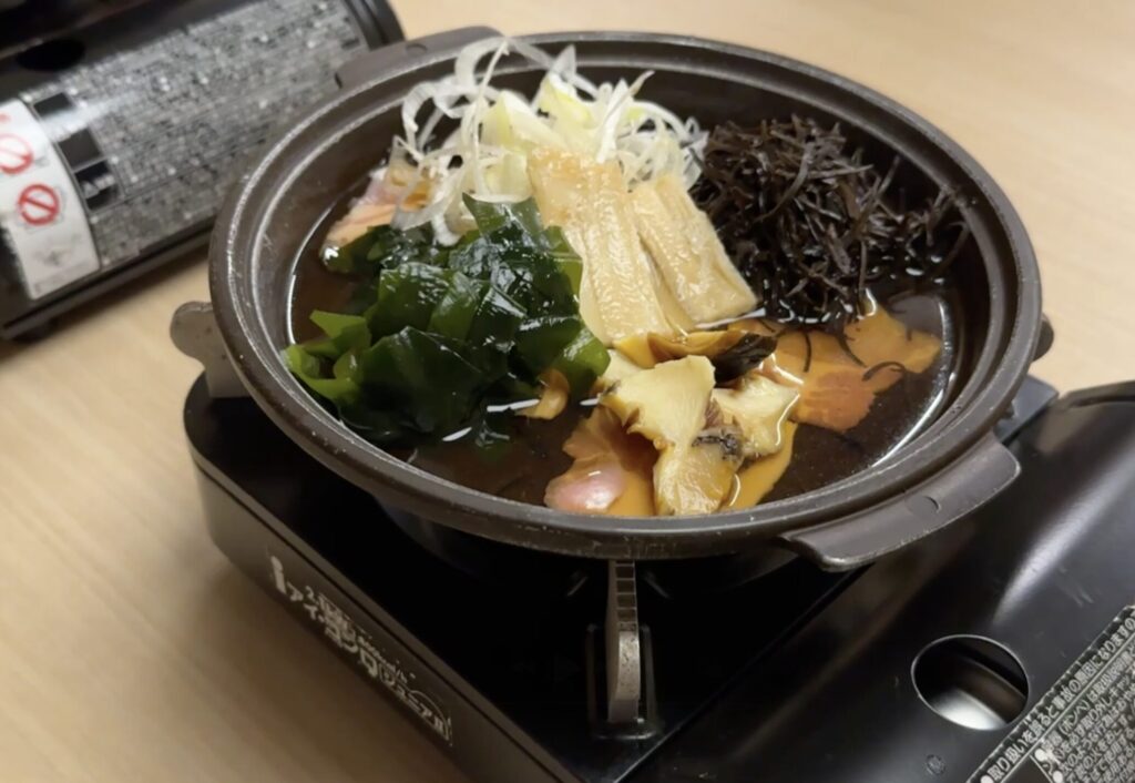 隠岐地方で採れる海藻「あらめ」を使った鍋料理もありました。