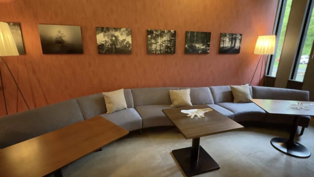 軽井沢マリオットの場合、クラブラウンジとレストランが兼用で、紐で場所を仕切っています。