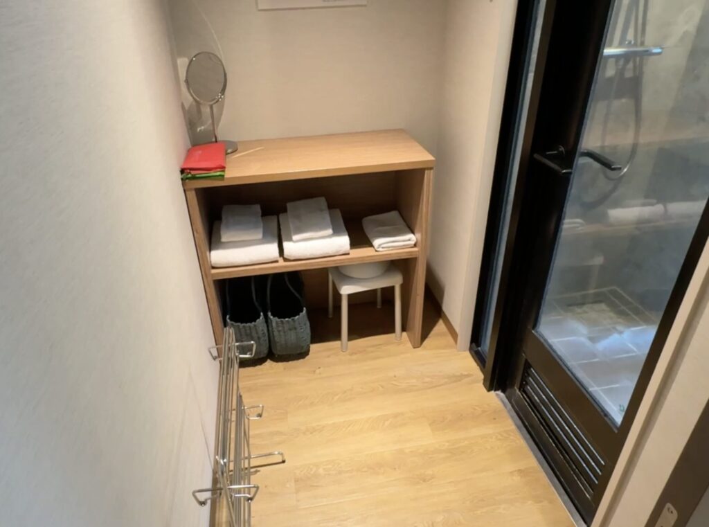 クローゼットはなく、荷物置き場の上にハンガーなどがかけてありました。