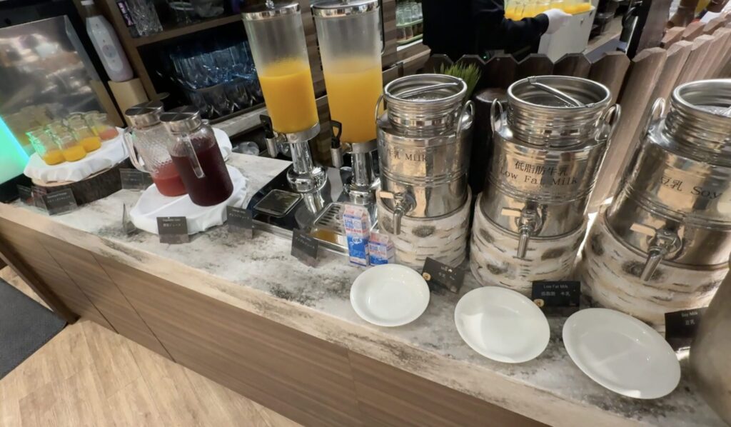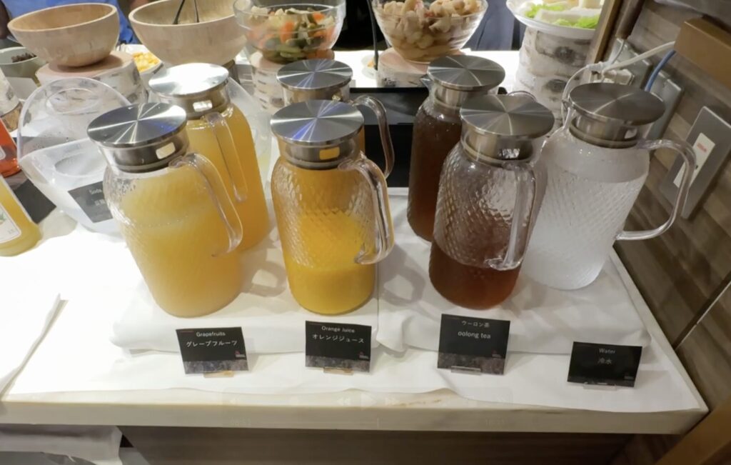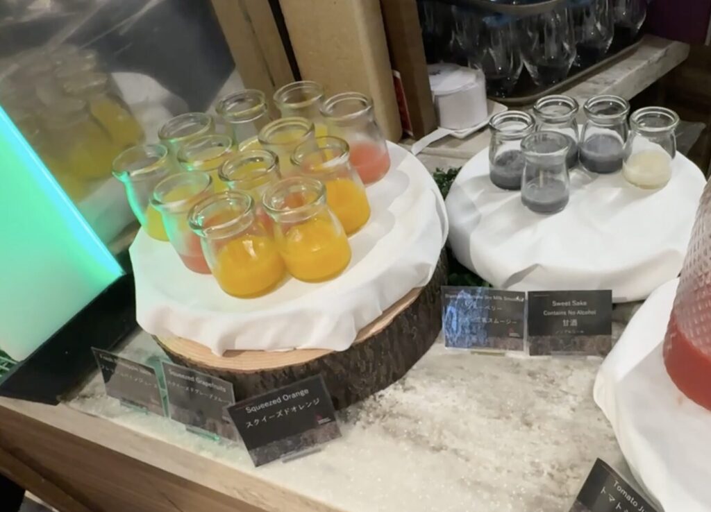 豆乳、牛乳、オレンジジュース、スムージー、甘酒などもありました。