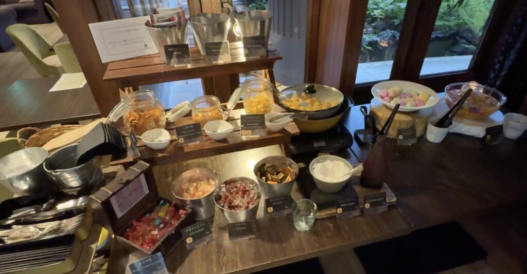デザートはお菓子やマシュマロ、プチパンケーキなどがありました。