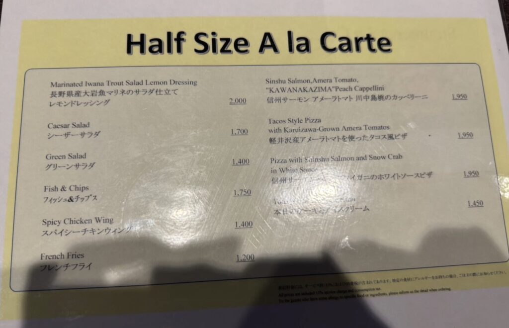 料理も20%割引で注文できるようで、サラダやピザ等もありました。