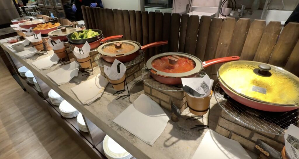 スクランブルエッグ、ソーセージ、ベーコンなど定番メニューは勿論のこと、