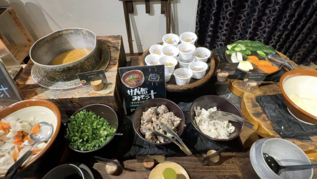 納豆や湯豆腐、鯖を入れたお味噌汁など珍しい料理もありました。