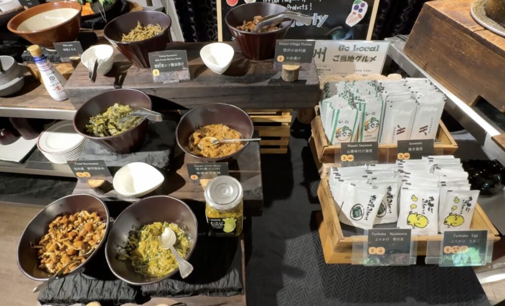 長野の漬物、そば、ワサビ、地元の珈琲、パンなどここだけで軽井沢が満喫できてしまいますね。