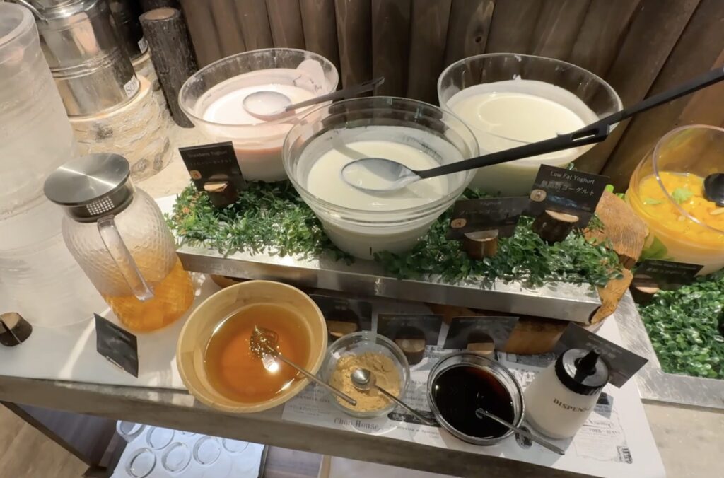 ヨーグルトは3種類あり、蜂蜜などで味付けもできました。