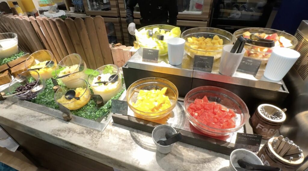フルーツも種類が多く、メロン、グレープフルーツ、オレンジなどがありました。