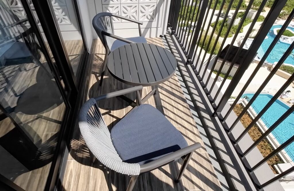 机と椅子もあるので、ゆっくり外の景色を楽しむことができます。