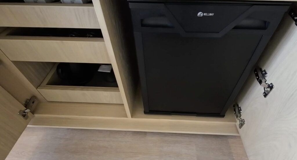 引き出しにはケトルやグラスなどが入っていました。
