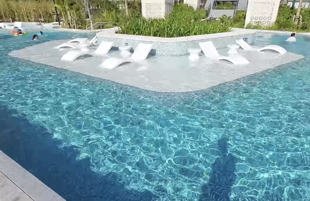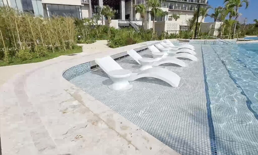 プールサイドに寝そべれる場所もありましたが、日除けがある場所じゃないと暑くて寝れませんでした。
