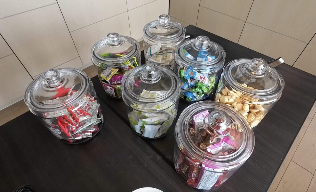 ヒルトンのダイヤモンド会員だったので、部屋で食べるお菓子やサイダーをもらえました。