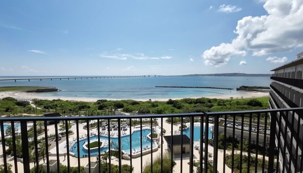 ベランダからは、伊良部大橋、ホテルのプールを一望できました。