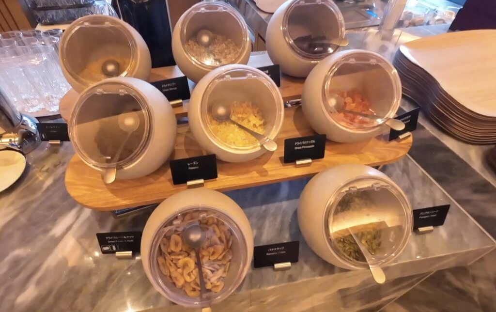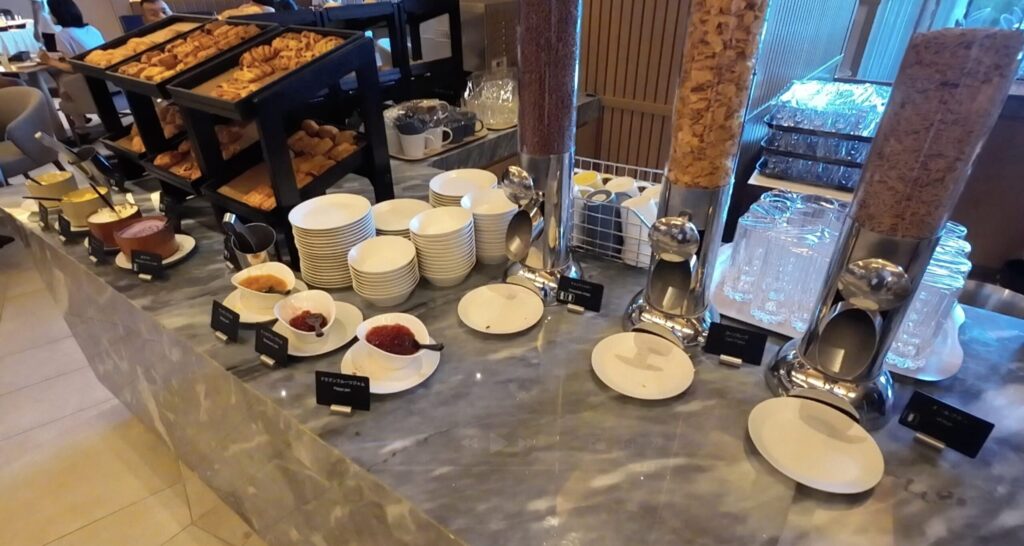 先にラウンジの朝食をご紹介し、後ほど朝食会場の「アジュール」をご紹介します。