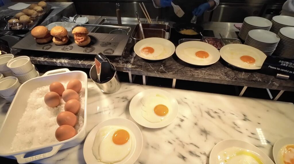 目玉焼きやオムレツは、注文すれば出来立てを作ってくれます。
