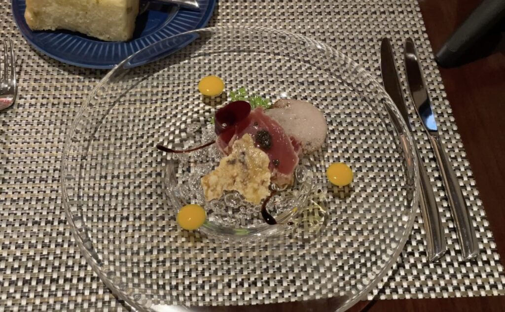 最初の料理は、鰹を使った前菜です。